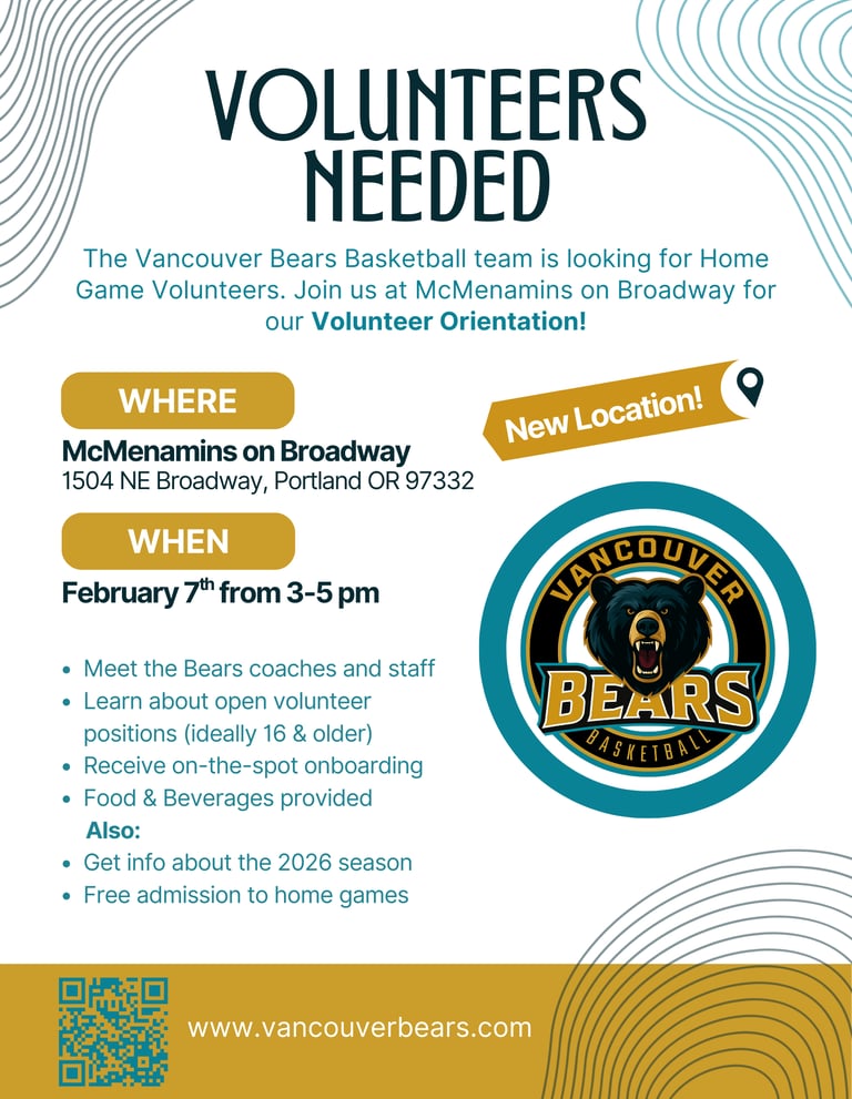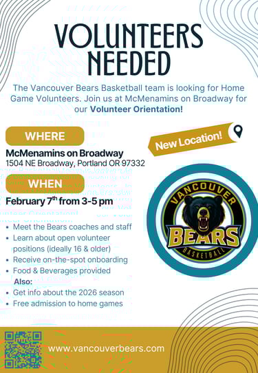 Join Above the Rim and the Vancouver Bears Basketball team and coaches to learn about open volunteer opportunities!